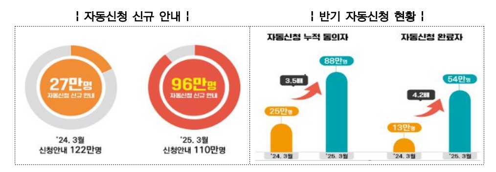 □ 또한, 장려금 자동신청 대상을 60세 이상에서 모든 연령으로 확대하여 이번 신규 동의 대상자는 96만 명으로 전년 대비 69만 명 증가하였습니다. 〔참고 3〕