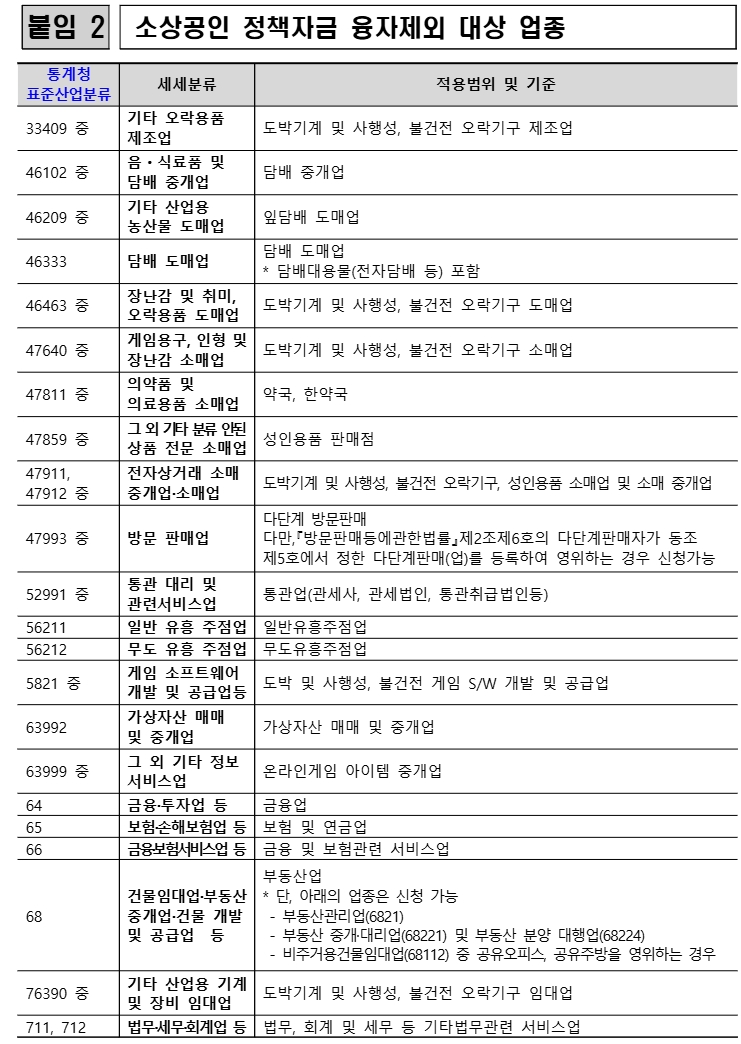 *소상공인 정책자금제외업종은 지원대상에서 제외합니다